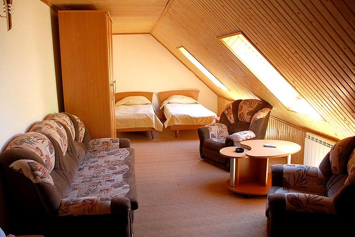 Альпийская стилистика здания, расположение в сосновом лесу, близость к горным склонам привлекает гостей отеля и манит возвращаться сюда ежегодно.